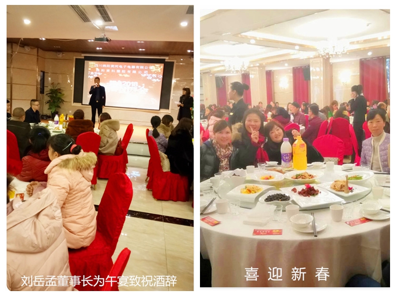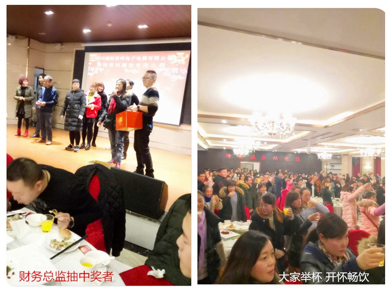 首先公司董事長劉岳孟先生為年會午宴致祝酒辭,感謝蒞臨現場的各位客戶朋友、供應商代表以及在坐的全體員工,給大家送上最溫馨的祝福,其次董事長對過去的一年進行了深刻的總結,并對新的一年進行了簡要的規劃,然后對全體員工在這一年里的全力付出以及對工作高度敬業精神表示衷心的感謝與贊揚。最后董事長對2018年的發展寄予了深厚的希望與祝福,殷切期盼2018年黃河電子、黃科塑膠全體同事團結一心,攜手共進,再創佳績!